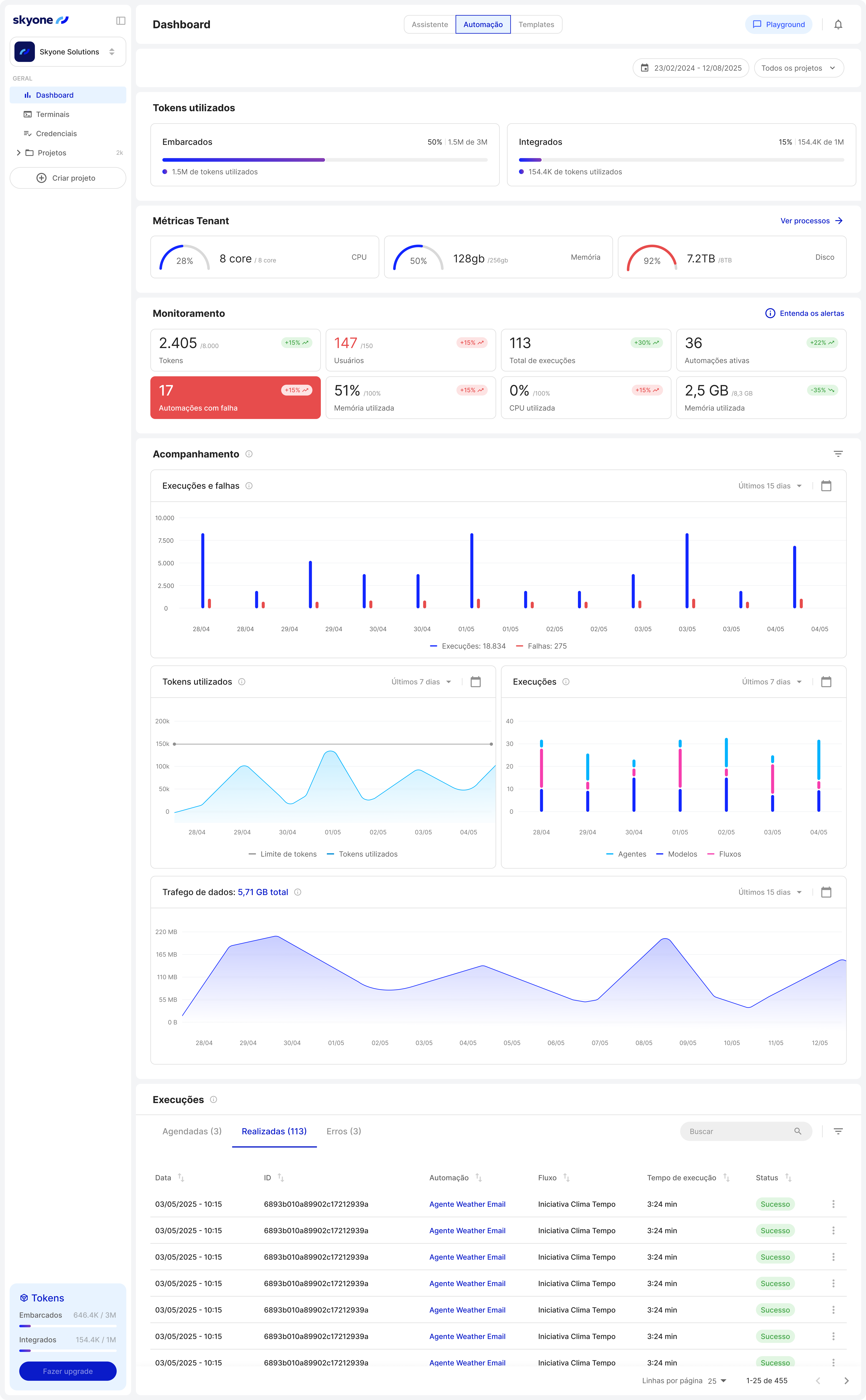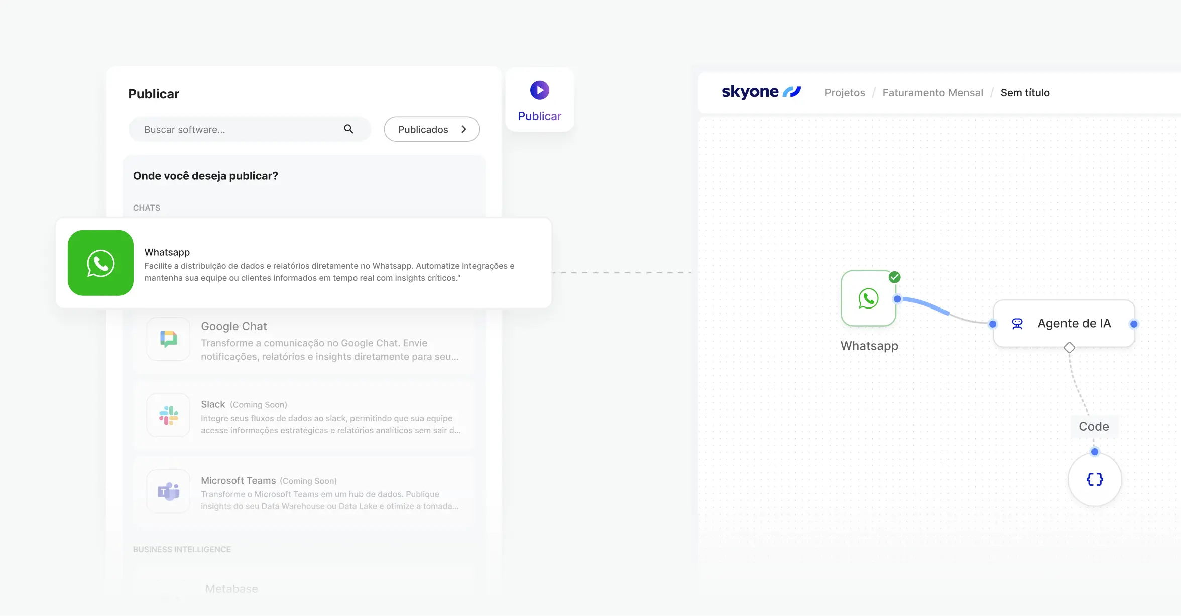 Crie automações inteligentes com agentes de IA e workflows integrados. O iPaaS do Skyone Studio conecta mais de 400 aplicações com escalabilidade e alto desempenho.