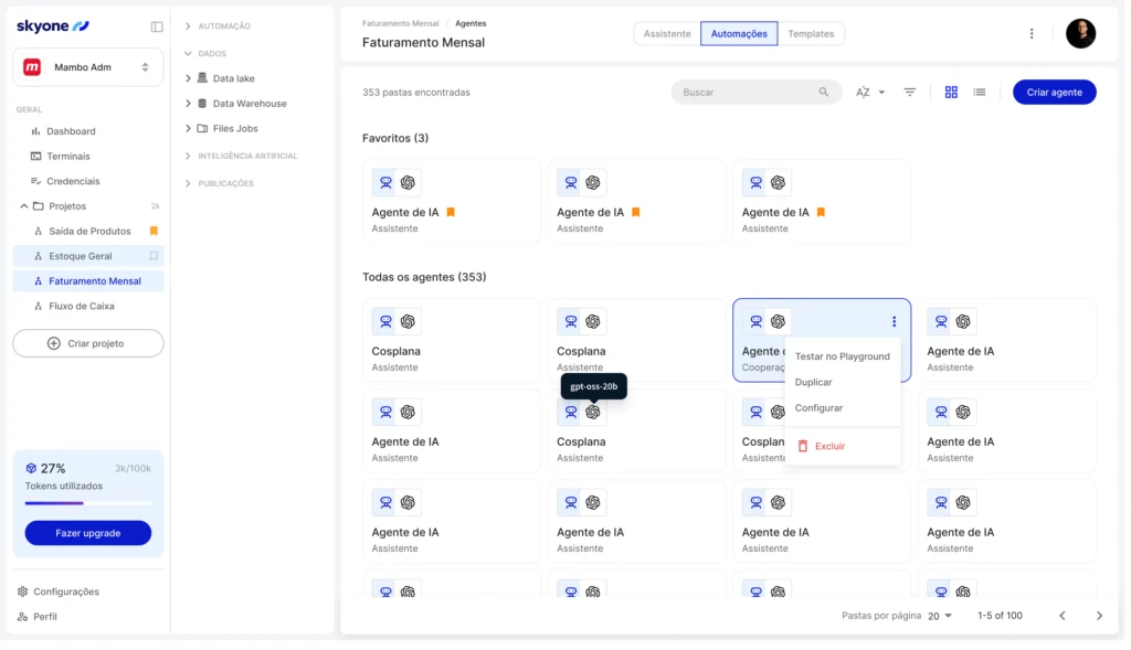 Conecte agentes inteligentes aos seus sistemas para executar tarefas e ampliar a capacidade operacional.