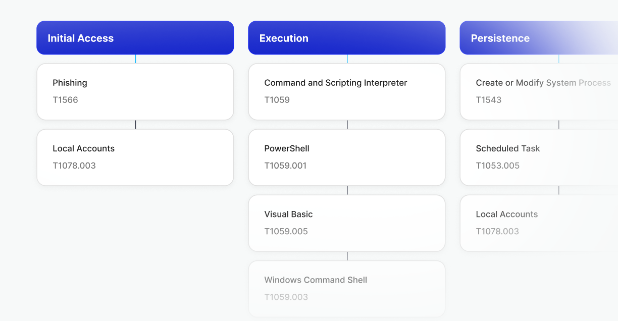 Uso da matriz Mitre ATT&CK para identificar táticas e técnicas de ataque, garantindo que a detecção de ameaças seja feita com base nas melhores práticas do mercado.