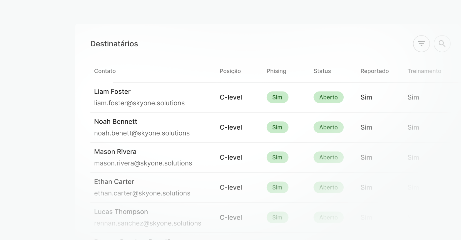 Acompanhe a evolução do risco dos usuários e a aderência aos treinamentos com métricas detalhadas de comportamento. Transforme a percepção de segurança de um conceito abstrato em dados concretos para a governança da sua empresa.
